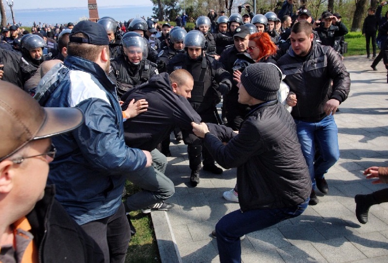Сьогодні в Одесі біля пам’ятника Невідомому матросу в парку Шевченка між активістами праворадикальних організацій та їхніми опонентами, які прийшли покласти квіти з нагоди 73-ї річниці звільнення Одеси від нацистських загарбників, сталися сутички.