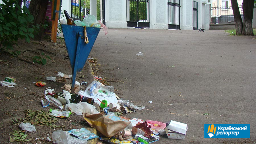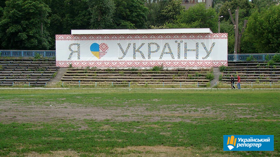 На центральній трибуні повісили банер: “Я люблю Україну!”. А поруч — смітник. Це так ми “любимо” неньку?