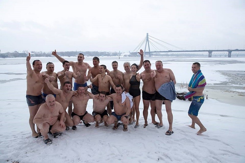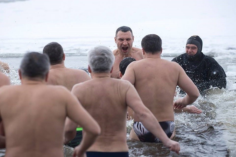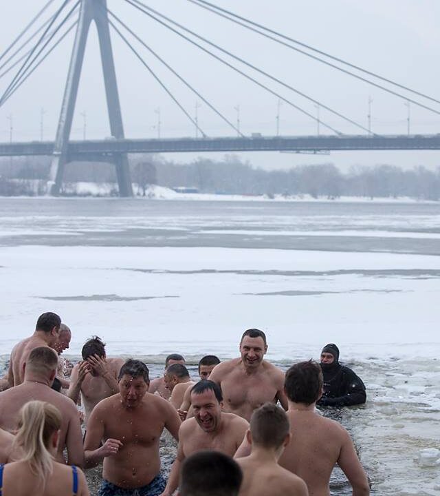 Приклад іншим політикам подав мер Києва Віталій Кличко. Разом із очільниками столичних районів, своїми заступниками, деякими депутатами Верховної Ради та Київради колишній чемпіон світу з боксу в надважкій вазі пірнув у воду в парку “Наталка”, що на Оболоні.