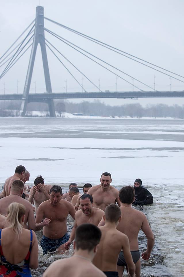 “Це була з мого боку пропозиція. Таке, знаєте, гуртування і гартування команди. Сьогодні велике християнське свято, і я хочу привітати всіх із Водохрещем. Вважається, що саме в цей день вода набуває цілющих властивостей”, – сказав Кличко після пірнання в води Дніпра.