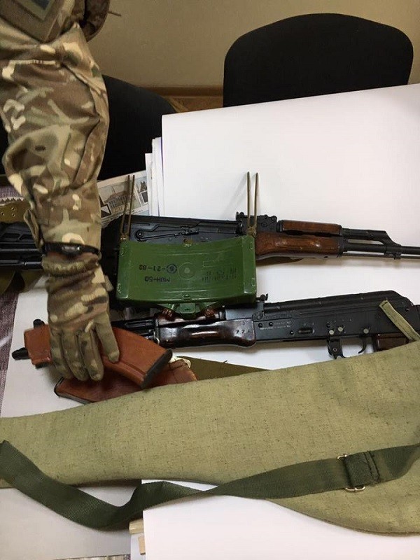 Під час обшуків у офісних приміщеннях, оселях і автомобілях п’яти фігурантів справи слідчі СБУ вилучили спецтехніку, карти пам’яті з фотографіями, зброю та набої, гранати Ф-1 та протипіхотні міни.