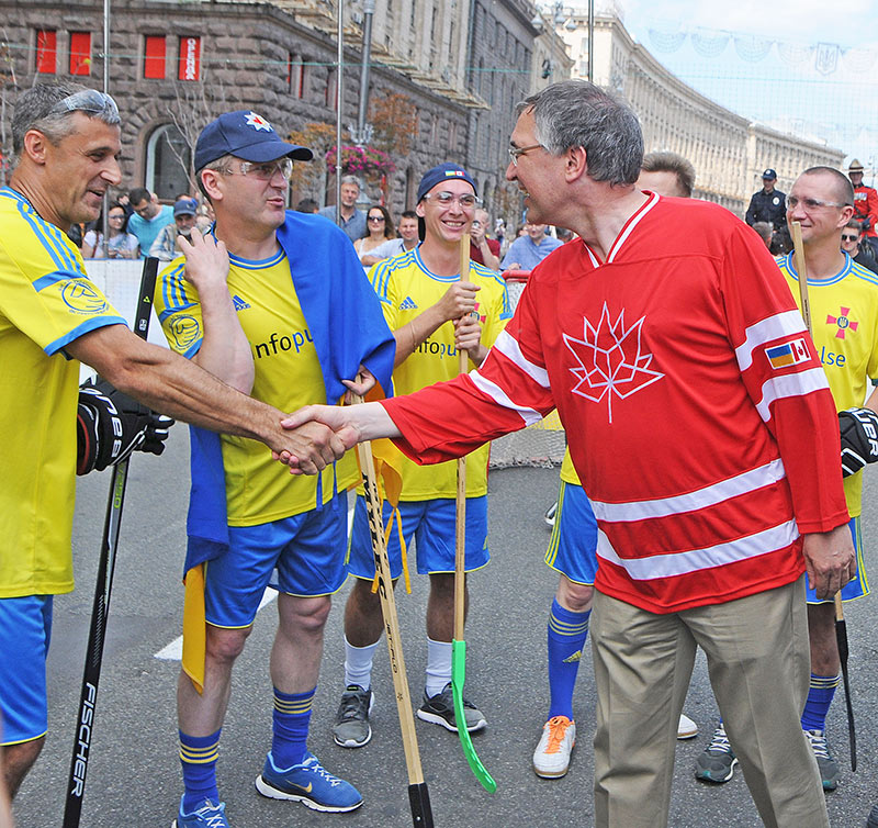 Не забуваймо, що Канада – це в тому числі й хокей. Отож у вуличний хокей з десятої години ранку до сьомої вечора грали прямо на Хрещатику. В турнірі взяли участь 9 команд, у складі яких — канадські та українські правоохоронці, представники посольств різних країн, учасники української збірної “Ігор Нескорених”, які у вересні цього року вирушать до Торонто.