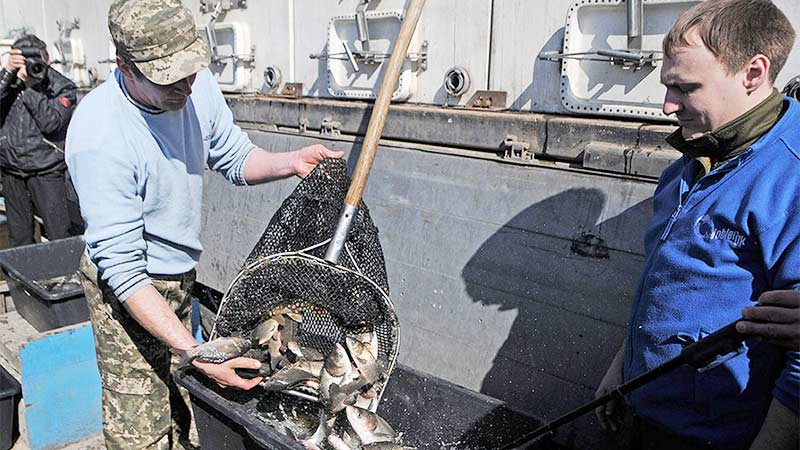 Майже п’ять тонн риби випустили у Дніпро у Києві. Білий амур, короп та товстолоб – рослиноїдні види.