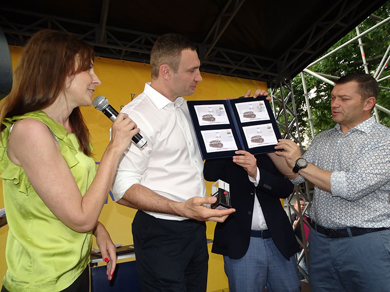 Віталій Кличко погасив ювілейну поштову марку, яку випустили до 125-річчя київського електричного трамвая.