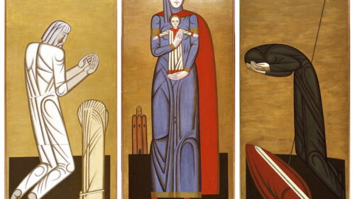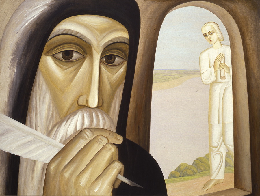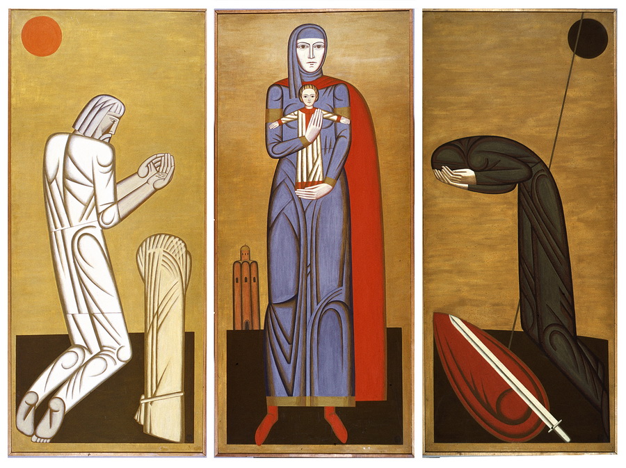 Прекрасна робота Олеся Солов’я: “Вівтар борців за волю України. Митрополиту Йосипу Сліпому, Михайлу Сороці та Катерині Зарицькій присвята”. Олександр Македонський із Донецька вже виставляв роботи на нашій виставці, а нині його картина «Сергій і Куля» присвячена воїну АТО.