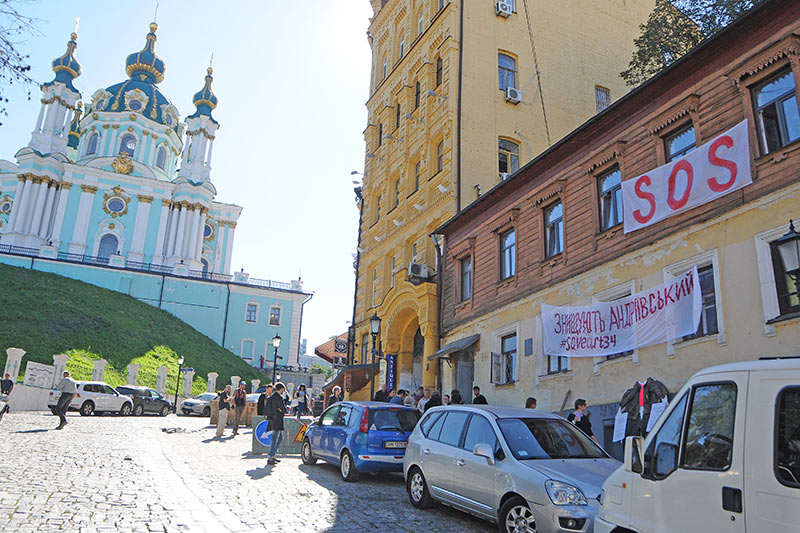 У Києві на Андріївському узвозі 36-в художники влаштували акцію протесту проти виселення зі старовинного будинку творчих майстерень дев”ятьох художників — членів Національної спілки художників України. Митців підтримали колеги та студенти.