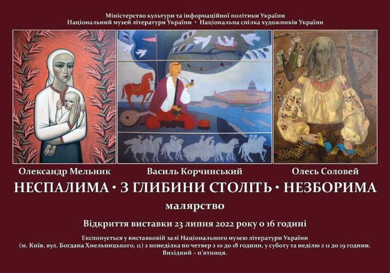 З 23 липня 2022 року о 16.00 у виставковому залі Національного музею літератури України відкривається виставка трьох знаних українських митців-побратимів, які працюють в жанрі історичної картини.