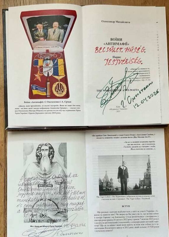 На книгах написані побажання українською і угорською мовами: