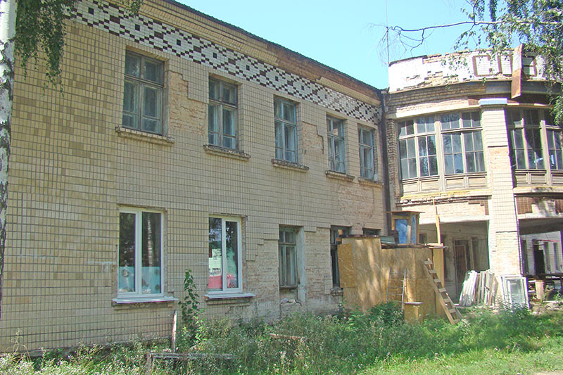 Ось у таких бетонно-будівельних “путах” чотирирічка зустрічає день знань. А будівля, між іншим, з давнішнім “паспортом” – ще панська. До 1941 року, кажуть, тут розміщувалася виправна колонія для підлітків. Після війни започаткували школу…