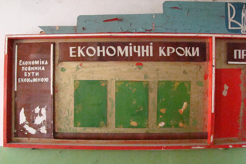Давно змело із цих теренів радгосп, вивітрилися і майно, і землі – розпорошилися в інтересах скоробагатьків та різних лукавих спритників. Залишилося лише попелище — конторські стіни з давнішньою наочною агітацією на зразок “Економіка повинна бути економною”, пропагандистськими плакатами “50 років Перемоги” з георгіївськими стрічками.