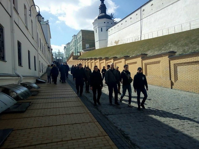 Після маршу націоналістичних організацій “За українське майбутнє без олігархів“, який проходив у центрі Києва, праворадикали з “С14” прийшли до Києво-Печерської Лаври на “екскурсію”.