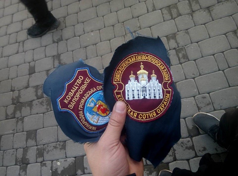 Хлопці, які останнім часом заявили про себе тим, що облили зеленкою і прогнали крізь коридор ганьби Юрія Крисіна, який був керівником групи тітушок під час Євромайдану, у соцмережі похвалилися, що “у результаті прогулянки є два зрізаних шеврони казачков”.