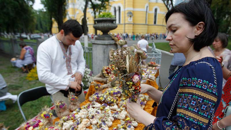 Фото на головній: освячення маку та зілля біля Володимирського собору