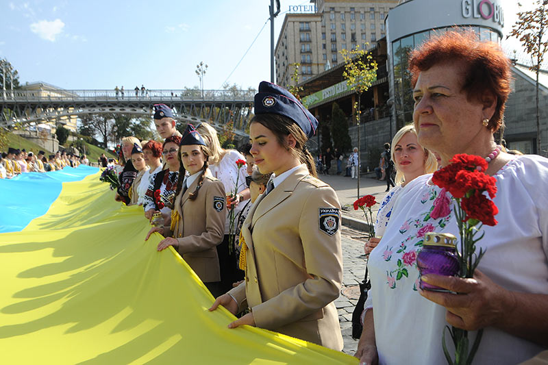 Щороку 21 жовтня світова спільнота відзначає Міжнародний день миру. Цього року на Майдані Незалежності на честь загиблих захисників Батьківщини активістки Спілки жінок України розгорнули прапор довжиною  65 метрів.