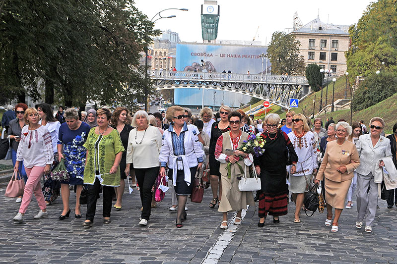 У пам’ятній ході Алеєю Небесної Сотні взяли участь також дружини послів іноземних держав, представниці національних діаспор та волонтерських організацій.