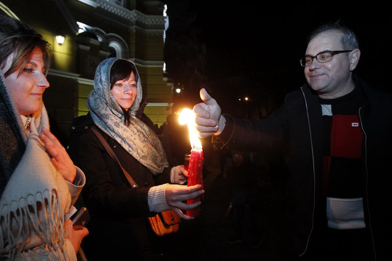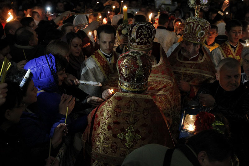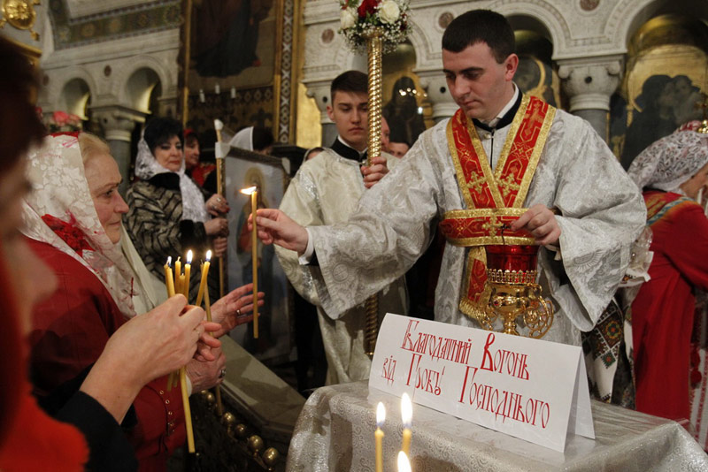 “Близько 20 години 15 квітня з Єрусалимського храму Воскресіння Христового до Володимирського собору було привезено Благодатний вогонь або Святе світло, як цей вогонь називається у грецькій традиції.