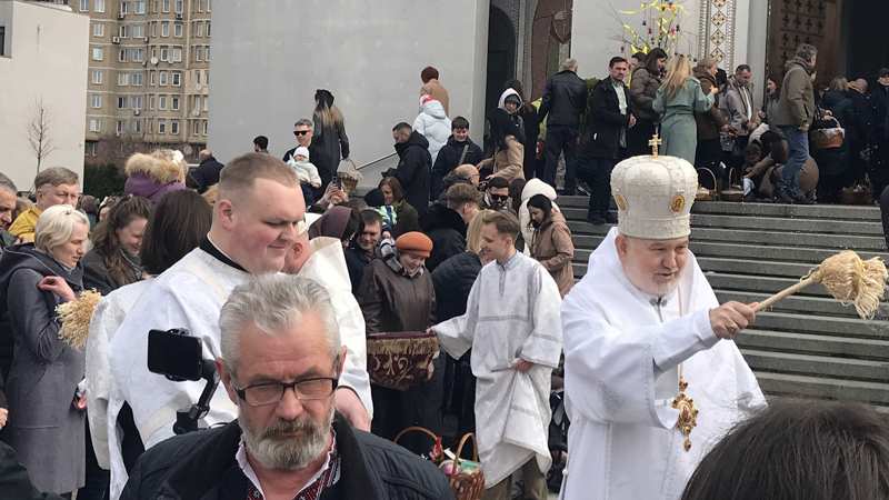 Освячення пасок та великодніх страв у Києві, в патіраршому соборі УГКЦ. Світлина “Українського репортера”.