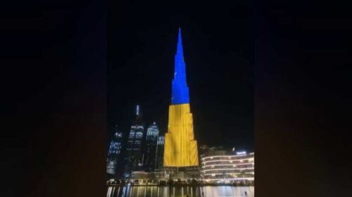 Читати даліНайвищий у світі хмарочос засяяв синьо-жовтими кольорами