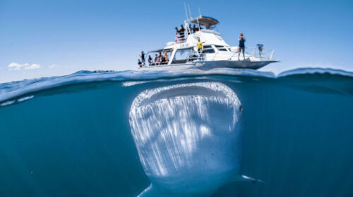 Біля узбережжя західної Австралії, за шість кілометрів від берега, гігантська акула 50 хвилин кружляла довколо катера з туристами. Про це повідомляє видання Mirror. Усім довелося добряче похвилюватися, адже акула могла легко перекинути і втопити судно. За словами фотографа, який провів таку екстримальну фотосесію, акула була на диво допитливою. Цікаво, що такі дії є надзвичайно рідкісними для цього виду риб, бо вони, зазвичай, живуть на величезній глибині. Даний вид акул, як виявилося пізніше, є безпечним для людей, бо харчується планктоном та іншими дрібними організмами. Та, попри все, китова акула є найбільшою…