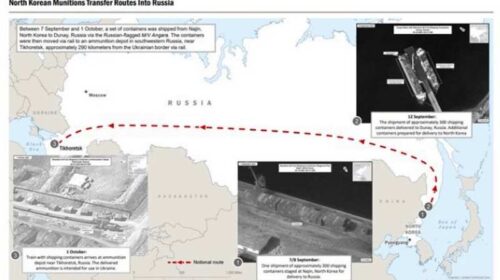 Сполучені Штати мають інформацію про те, що Північна Корея передала росії тисячу контейнерів з “військовим обладнанням”, а в обмін розраховує отримати важку зброю, включно з авіацією. Про це повідомляє “Європейська правда” з посиланням на низку кореспондентів, які вочевидь були на закритому брифінгу Білого дому. Журналісти отримали інформацію від координатора зі стратегічних комунікацій Ради національної безпеки Білого дому Джона Кірбі. “Ми маємо інформацію, що Північна Корея поставила росії зброю для застосування в Україні. КНДР надала росії понад 1000 контейнерів військового обладнання та боєприпасів. Сьогодні ми публікуємо графік, що зображує пересування контейнерів”,…