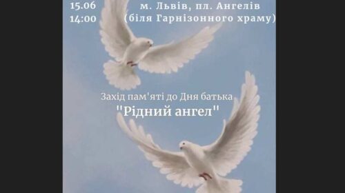 У неділю, 15 червня, з нагоди Дня батька у центрі Львова, на площі Ангелів (біля Гарнізонного храму святих апостолів Петра й Павла), відбудеться захід пам’яті «Рідний ангел». Подію присвячено дітям, які втратили батька через війну. Початок – о 14:00. Захід пам’яті «Рідний ангел» покликаний подарувати дітям можливість символічного зв’язку із татом, який став їхнім небесним ангелом, а також створити інститут пам’яті та допомогти у реабілітації дітей після втрати. Ініціаторами події виступили ГО «Жіноча опора» та ГО «Перший жіночий ветеранський простір “Рехаб”. За підтримки ГО “Спілка жінок Львівщини” та ГО “Спілка…