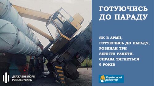 Слідчі теруправління Державного бюро розслідувань Миколаєва повідомили про підозру колишньому заступнику командира військової частини Повітряних Сил та техніку роти забезпечення військової частини Сухопутних військ, які допустили падіння автокрана із зенітними ракетами вартістю 1,5 мільйона гривень. Встановлено, що у травні 2012 року заступник командира мав відправити зенітні ракети С-300 на парад. Через те, що автокран військової частини був на ремонті, він не міг виконати вантажні роботи. Для цього заступник командира позичив кран в іншій військовій частині. Але він також виявився несправним. Технік роти, який сів за кермо крана розвантажувати ракети, взагалі…