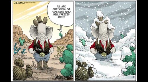 Америка, а це країна південна, мерзне. Території з населенням від 150 до 170 мільйонів занесені снігом, покриті льодом і накриті мінусовими температурами. Особливо страждає незвичний до холодів Техас, він виявився абсолютно не готовим до удару стихії, і мільйони людей замерзають в холодних будинках, які залишилися без електрики, а подекуди і без подачі води. Але, виявляється, і на трагедії можна спекулювати! “Замерзлі вітряні турбіни” винні в енергетичних проблемах в Техасі – ця дезінформація поширюється республіканцями і «експертами», тісно пов’язаними з газом і нафтою, і стала з’являтися в соціальних мережах правих сил,…