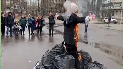 На гуляннях в останній день Масляної, 26 лютого, українці на знак протесту проти війни спалили замість опудала-символу свята опудала путіна. Це сталося одразу у двох містах – Києві та Дніпрі. Як повідомляє телеканал “Київ”, у столиці опудало кривавого диктатора спалили на Співочому полі в музеї Пирогово. Дія була кульмінацією заходу. На солом’яне опудало прикріпили портрет путіна та підпалили. Горів солом’яний кремлівський дід дуже потужно. Ба більше, спалювання “путіна” супроводжувалося українськими піснями та хороводами глядачів. Буквально за кілька хвилин пожежники загасили залишки полум’я. “На Співочому полі путін все. Від нього залишилася…