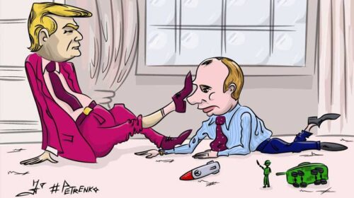 Америка робить ставку на подальший розвиток ядерної зброї і відмовляється від попередніх міжнародних зобов’язань. Президент Трамп заявив, що його країна виходить з Договору про ліквідацію ракет середньої і малої дальності. Він пояснив це тим, що Росія порушує умови цієї угоди. Малюнок Андрія ПЕТЕРЕНКА Like