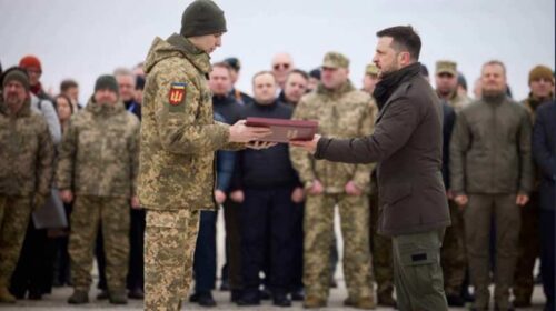 У другу річницю початку повномасштабної агресії росії проти України президент Володимир Зеленський вручив державні нагороди українським військовим в аеропорту “Антонов” біля Гостомеля. Про це повідомляє пресслужба Офісу президента. Церемонія відбулась за участі президентки Європейської комісії Урсули фон дер Ляєн, голови Ради міністрів Італійської Республіки Джорджи Мелоні, прем’єр-міністра Королівства Бельгія Александра Де Кроо та прем’єр-міністра Канади Джастіна Трюдо та українських посадовців. Володимир Зеленський зазначив, що Гостомель – це символічне місце, адже саме тут путін хотів виграти ключову битву того бліцкригу, який він планував, – за Київ. І саме тут він зазнав…