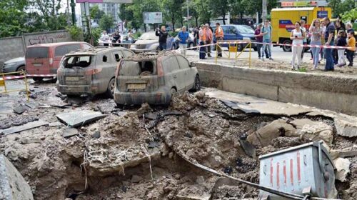 Камери зняли момент прориву труби водопостачання у Голосіївському районі Києва. Інцидент, у наслідок якого утворився фонтан, заввишки 7 поверхів, стався вчора, 29 травня. У результаті нижні поверхи будинку поруч залишились без шибок і серйозно постраждали кілька автомобілів. Людей, на щастя, не зачепило, а кадри варті Голлівуду. За даними “Київенерго”, через гідравлічні випробування луснула труба магістрального трубопроводу діаметром 800 мм, унаслідок чого утворився котлован. “Зранку розпочалися ремонтні та відновлювальні роботи на проспекті Голосіївському, 27. Ремонт цієї ділянки тепломережі триватиме близько доби. Протягом доби аварійна бригада КИЇВЕНЕРГО завершить роботи в металі, після…