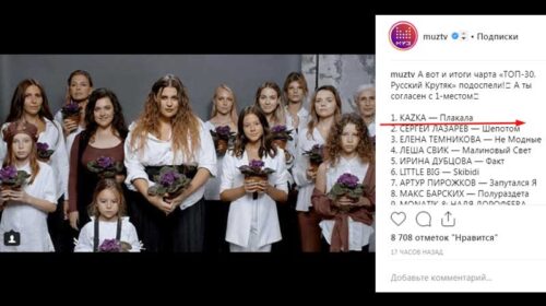 Музичний телеканал “МУЗ-ТВ” опублікував новий рейтинг за підсумками чарту “ТОП-30. Русский Крутяк”. На перше місце впевнено вийшла українська група KAZKA з синглом “Плакала”. Вихід групи на чільне чарту на російському музичному телеканалі – безперечно можна назвати серйозною перемогою на музичному полі бою. До слова, хіт популярної групи KAZKA “Плакала” недавно увійшов в топ-10 пісень світового чарту Shazam. Крім того, ця композиція є найпопулярнішим українським треком на YouTube – на сьогоднішній день тільки аудіоверсія синглу має понад 71 мільйон прослуховувань, а кліп подивилися вже 41 мільйон меломанів з усього світу, –…
