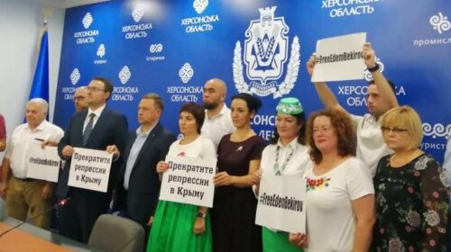 У Херсонській ОДА під час круглого столу, присвяченого Міжнародному дню корінних народів, відбувся флешмоб, учасники якого виступили проти репресій у Криму та на підтримку бранців Кремля. Запропонувала долучитися до флешмобу учасникам круглого столу, присвяченого Міжнародному дню корінних народів, член меджлісу кримськотатарського народу, заступниця голови Генічеської РДА, дружина кримськотатарського політв’язня Едема Бекірова – Гульнара Бекірова, – повідомляє Укрінформ. «Ви знаєте, який тяжкий стан сьогодні у Володимира Балуха, я впевнена, що ви знаєте і про Едема Бекірова, мого чоловіка – Херсонщина, Херсон першими підтримали мене, нашу родину», – зазначила Бекірова. Вона зачитала…