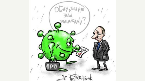 Незалежні спостерігачі звертають увагу на такий факт. Після візиту Путіна до інфекційної лікарні “Комунарка”, де він привітався з головним лікарем Денисом Проценком (медик є хворим на коронавірус), господар Кремля відразу ж змінив стиль роботи. Він самоізолювався й відтепер проводить наради дистанційно. Чи не заразився коронавірусом диктатор? Путін провів нараду з урядом в режимі відеоконференції, заявивши про “дуже напружену обстановку”. Пресекретар Путіна Пєсков не зміг відповісти на запитання журналістів про те, чи викликана така самоізоляція відвідинами інфекційної лікарні. Коментарі із соцмереж. Малюнок Андрія Петренка. Like