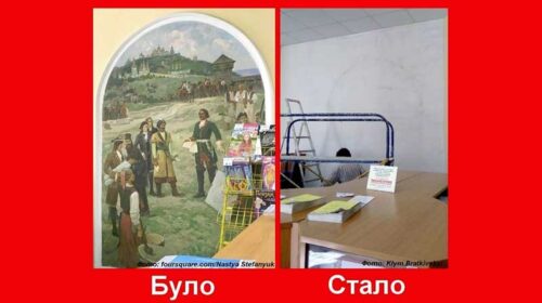 У відділені поштового зв’язку № 71 на Подолі в Києві (вул. Костянтинівська, 8, навпроти будинку Петра I) декомунізували фреску Петра Першого, на якій зображено сцену представлення проекту будівництва київської фортеці. Про це повідомив у Фейсбуку журналіст Клім Братковський. “Як мені повідомила працівниця пошти, хтось поскаржився на зображення Петра I”, – написав Братковський. Like