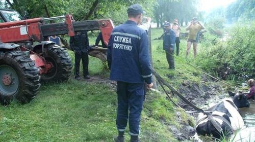 У селі Березна, що у Володарському районі Київської області, вчора на пасовищі в мулі річки Рось застрягла корова. Рятувальники, які прибули на виклик, побачили, що корова стоїть у воді і самостійно не може вийти на берег. Тварину обв’язали пожежними рукавами та за допомогою сільськогосподарської техніки витягли з води на землю. Like