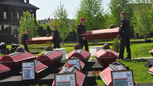 У селі Гатне на Київщині військовослужбовці Васильківського гарнізону з військовими почестями перепоховали останки 110 воїнів – захисників Києва. Під час пошуку серед 110 загиблих солдатів і офіцерів працівники Археологічного патріотично-пошукового об’єднання «Дніпро-Україна» знайшли останки та особисті речі восьми воїнів 4-го полку повітряного спостереження, оповіщення та зв’язку, повідомляє Міністерство оборони України. Особисті речі полеглих воїнів передали рідним. Решту речей з підтверджувальними документами – до музею радіотехнічної бригади повітряного командування «Центр» Повітряних Сил ЗС України. За словами представника пошукової групи Сергія Саюка, речі, передані військовослужбовцям радіотехнічної бригади Повітряних Сил, були знайдені на…