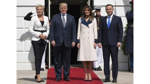 Нещодавно у Вашингтоні відбулася зустріч лідерів США і Польщі – польський президент Анджей Дуда прибув до столиці Америки разом зі своєю дружиною Агатою. Трампи привітала подружжя в Білому Домі, де пари позували фотографам разом і перша леді США Меланія в черговий раз одягнулася у пальто. Вовняна модель класичного крою італійського бренду Gucci вартістю практично в 3000 євро підкреслила елегантний силует екс-моделі, – ПОВІДОМЛЯЄ “bilshe“. Like