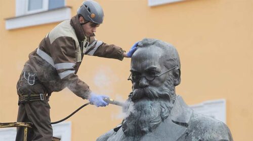 Комунальники Шевченківського району столиці започаткували акцію “Помий пам’ятник”. 16 березня чистим став пам’ятник керівникові Центральної Ради УНР Михайлу Грушевському. Бронзовий монумент на Володимирській, 55 причепурили з нагоди 100-річчя утворення Української Центральної Ради. Його очистили за допомогою води та апарату високого тиску. Також використовували мийні засоби, що не можуть зашкодити пам’ятнику. Фото Олексія ІВАНОВА Like