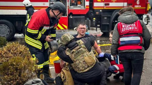 В Одесі сьогодні внаслідок російського ракетного удару по місту було пошкоджено цивільну інфраструктуру. На місці влучання виникла пожежа. Про це повідомила ДСНС України. Рятувальники ДСНС одразу прибули на місце удару та почали гасіння вогню, розбору завалів і пошуку постраждалих. У цей час ворог повторно завдав ракетного удару – загинув рятувальник. За попередньою інформацією, травмовано 20 людей, з яких 5 — співробітники ДСНС. Пошкоджено 10 приватних будинків, станція технічного обслуговування, газогін низького тиску та дві пожежно-рятувальні автомобілі. Тривають роботи щодо ліквідації пожежі на газогоні та у приватному будинку на загальній площі…
