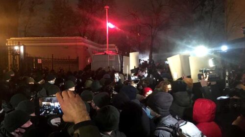 Гучна акція протесту спалахнула увечері 23 лютого на розі столичних вулиць Банкової та Інститутської, біля Офісу Президента України. Таким чином люди, а їх декілька тисяч, відреагували на ув’язнення громадського активіста Сергія Стерненка. Як розповідав “Український репортер”, 23 лютого Приморський райсуд в Одесі оголосив вирок Сергію Стерненку – сім років ув’язнення з конфіскацією майна за нібито викрадення і катування людини. “Українська правда” розповідає, що у столиці “поліція перекрила прохід до Офісу президента спецтехнікою та живим кордоном з поліції. Прихильники Стерненка, якого 23 лютого ув’язнив суд в Одесі, скандують “Аваков чорт”, “Свободу…