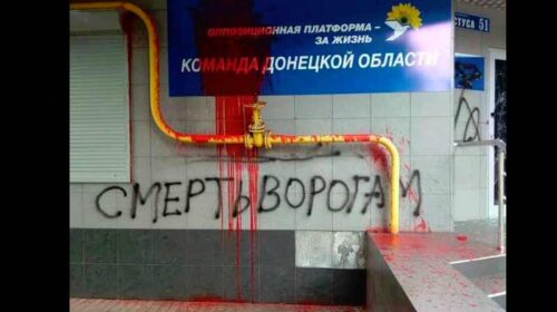 Краматорський офіс політичної партії “Опозиційна платформа “За життя” невідомі облили фарбою. Про це повідомляє “Общежитие”. Кілька днів тому в Краматорську, на вулиці В. Стуса, з помпою було відкрито офіс приймальні “Опозиційна платформа – за життя”. В процесі брала участь народний депутат України Наталія Королевська. З появою перших же повідомлень про відкриття офісу, в соцмережах з’явилися маса повідомлення про певну символічність дійства, адже один із стовпів ОПЗЖ, Віктор Медведчук свого часу брав участь в судилищі над українським поетом Василем Стусом. І ось тепер людське невдоволення вилилося в інцидент. Вранці 29 червня…