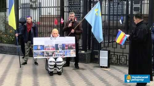 Сьогодні у столиці України, біля російського посольства відбулося імпровізоване засідання “Гаазького трибуналу”. На лаві підсудних був Володимир Путін. За злочини проти людства суд оголосив вирок – десять термінів пожиттєвого ув’язнення. Відбувати покарання Путін буде в найстрашнішій колонії РФ “Чорний дельфін”, де сидять довічно ув’язнені. Головував на засіданні трибуналу колишній політв’язень російського режиму Ісмаїл Рамазанов. Він, як і годиться, встановив особу підсудного, де народився, ким працює. Під час допиту суддя поставив людині в арештантському одязі низку запитань, зокрема про те, чи визнає він свою вину у веденні загарбницьких війн в Україні,…