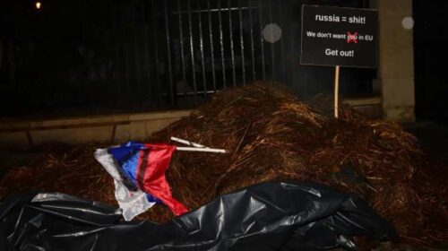 Протестувальники заявили, що висипали дві тонни гною біля будинку посла рф в Польщі в суботу у другу річницю повномасштабного вторгнення росії в Україну. Як свідчать світлини, які отримало інформагентство Reuters з протесту в Констанцин-Єзьорні, де мешкає посол, активісти поклали закривавлений російський прапор з літерою “Z” на купу гною та встромили в неї табличку з написом “Росія = лайно! Ми не хочемо тебе в ЄС! Забирайтеся геть!”. Водночас у Варшаві о шостій ранку за місцевим часом інші протестувальники відтворювали звуки сирен, пострілів та вибухів біля будівлі, де мешкають російські дипломати. Ми хотіли…