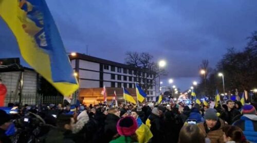 У Варшаві в п’ятницю вечері декілька тисяч людей у першу річницю повномасштабного вторгнення росії в Україну зібралися під посольством росії. Люди тримали в руках прапори України, Польщі та численні плакати проти російської агресії, – повідомляє Укрінформ. Як підкреслила лідерка варшавського Євромайдану Наталка Панченко, усі мають пам’ятати, що сьогодні минає не 365 днів війни, а вісім років і 365 днів війни. Вона подякувала усім полякам, що у війні росії проти України, “вони обрали бути на боці України, на боці переможця”. “росіяни думали завоювати Україну за три дні, а пройшов вже рік.…