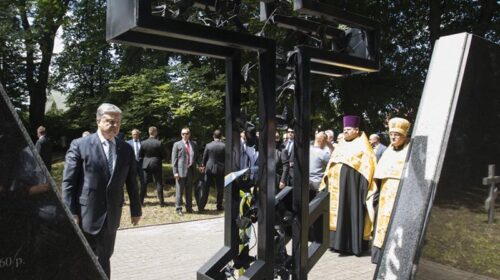 Президент Петро Порошенко під час робочого візиту до Польщі взяв участь у відкритті Меморіалу пам’яті українців, які загинули від рук польських “батальйонів хлопських” та підрозділів Армії Крайової. Церемонія відбулася в селі Сагринь Люблінського воєводства, де в березні 1944 року поляки вбили понад 800 українців, у тому числі більше 100 дітей. Петро Порошенко зазначив: “Сьогодні ми тут, аби спільною молитвою вшанувати пам’ять сотень дітей, жінок, чоловіків, людей старшого віку, які загинули тільки за те, що вони називали себе українцями, за те, що вони ходили до іншої церкви. І разом з ними ми…