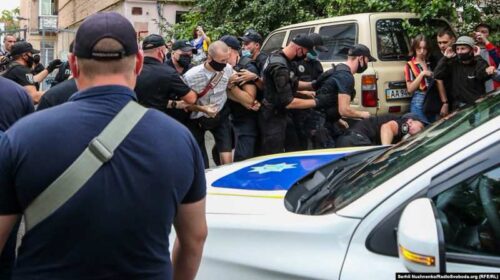 Під час штовханини на акції під посольством Білорусі в Києві затримали колишнього політв’язня, кримчанина Олександра Кольченка і ще кількох учасників, повідомляє Радіо Свобода. За попередніми даними, загалом затримали шістьох людей. Як повідомили правоохоронці Радіо Свобода на місці, перші двоє затриманих намагалися жбурляти яйця в бік будівлі посольства. Кольченка затримали після того, як до провулку, де перебували попередні затримані, намагалася проїхати автівка патрульних. Зчинилася сутичка, було пошкоджено авто поліції. Під стінами посольства Білорусі в Україні 10 серпня кілька десятків людей вийшли на знак протесту проти результатів виборів у Білорусі та затримання…