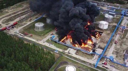 Вранці у вівторок, 6 грудня, у рашистському Курську в районі аеродрому стався вибух із подальшою пожежею. Як уже заявив губернатор Курської області Роман Старовойт, горить нафтопровідник. Його намагаються загасити пожежні служби. У соцмережах вже з’явилися фото та відео з місця НП. На кадрах видно момент вибуху та високий стовп полум’я у темному нічному небі. Також очевидці повідомляють, що атака безпілотника спровокувала масштабне загоряння. Вогонь із аеродрому бачать мешканці кількох районів міста. Зазначимо, це другий день поспіль, коли в росії горять аеродроми. Вранці 5 грудня відбулася «бавовна» на російських стратегічних авіабазах…