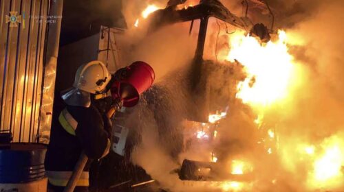 Надзвичайна ситуація сталася 16 травня о першій ночі на вулиці Вербовій, 4-а в Оболонському районі Києва. До оперативно-координаційного центру Головного управління ДСНС України надійшло повідомлення про пожежу. На місце виклику було направлено рятувальників 25-ї Державної пожежно-рятувальної частини, повідомляє ДСНС. Встановлено, що у вантажному автомобілі Renault виникла пожежа з розповсюдженням вогню на поруч розташовану вантажівку DAF. Вогнеборці відразу приступили до гасіння пожежі. О 1:27 вогонь погасили. Автомобіль Renault згорів повністю, у вантажівці DAF знищено кабіну водія та колеса. Жертв та постраждалих немає. Причину виникнення пожежі встановлюватимуть правоохоронці. Фото і відео: ДСНС…