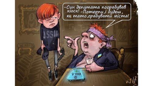 Український художник Георгій Ключник присвятив карикатуру найгучнішому епізоду кримінальної хроніки, який стався у Києві за останні дні. Нагадаємо, поліція затримала 14-річного сина народного депутата від “Радикальної партії Олега Ляшка” Ігоря Попова – Богдана після невдалої спроби пограбувати магазин. Свій малюнок назвав “Про яблуню та яблучко“. Like
